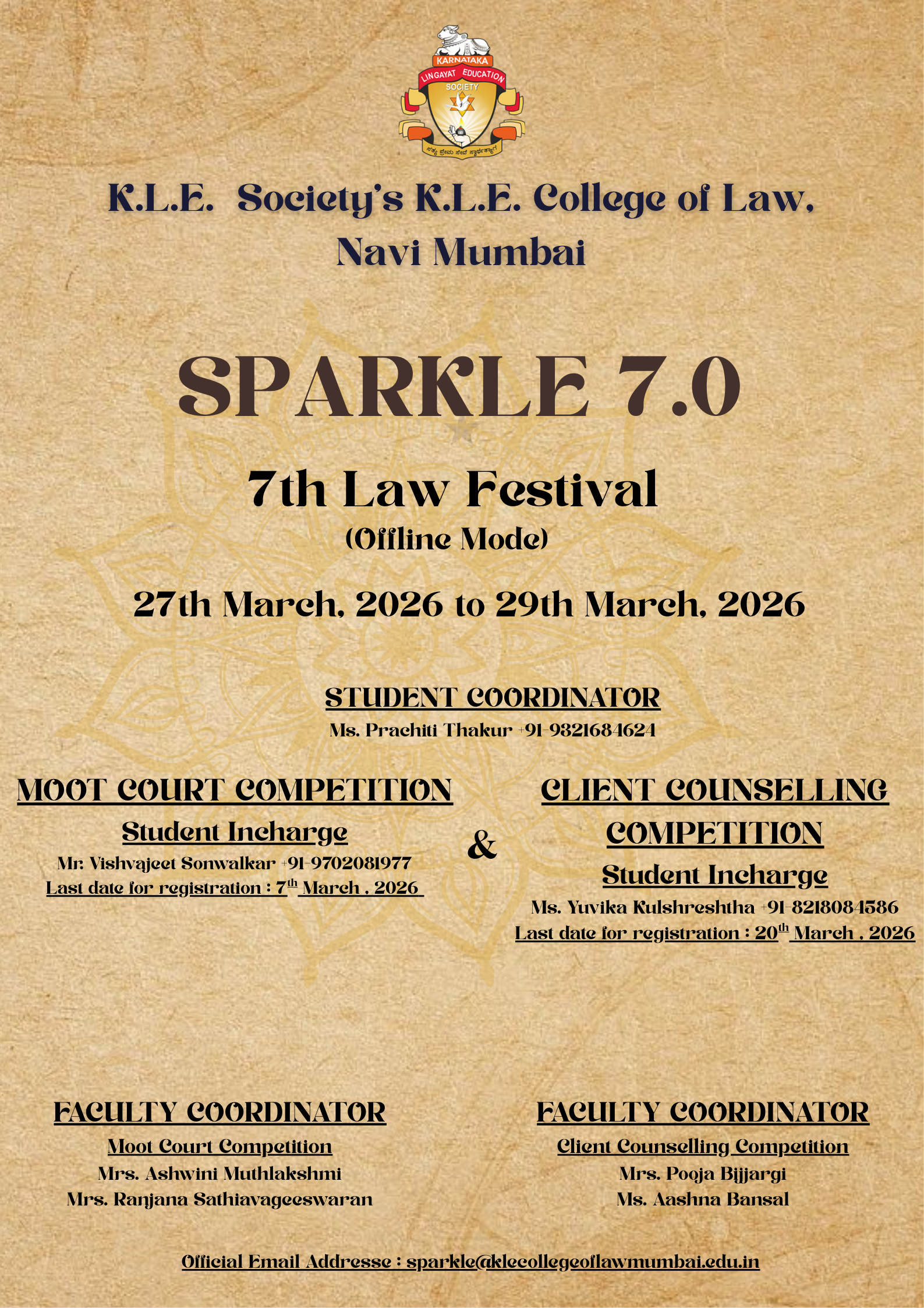 SUCCESSFUL COMPLETION OF SPARKLE 4.0 !! KLE College of Law, Navi Mumbai, conducted its 4th National Law Festival- SPARKLE 4.0 from March 16th to March 19th, 2023. The Law Fest [...]